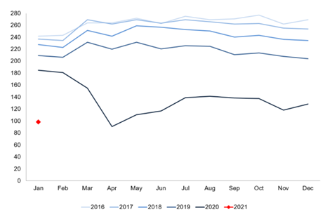 If we use data from LINK as a proxy for cash usage in the UK and compare the week-on-week cash withdrawal trends from ATMs across the LINK network, further evidence is shown on the continuing decline of cash-based transactions. The latest LINK data shows a c. 48% decline in cash withdrawals looking at YTD 2021 versus the same period last year (see table below for trends).